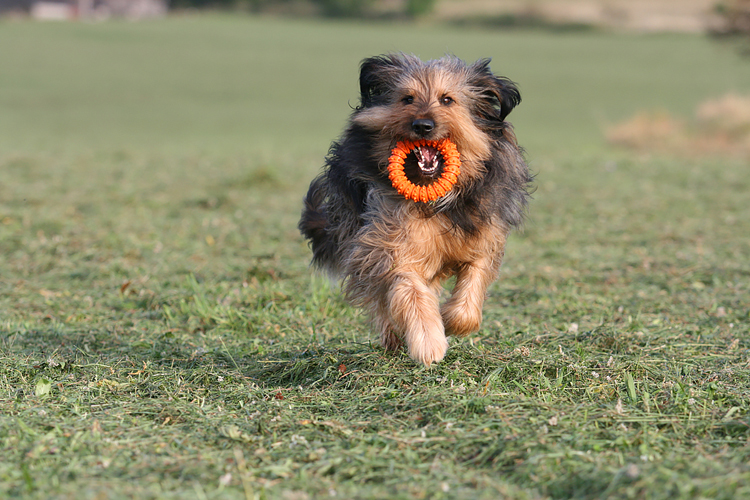 Sie schaut sich immer noch sehr viel von unseren "großen" Hunden ab, wodurch wir mit der Erziehung relativ leichtes Spiel haben. Manchmal kommt dann auch mal ihr Dickkopf durch. Sie macht das aber immer auf so eine nette Art, dass sie in der Zwischenzeit alle um den kleinen Finger gewickelt hat, was natürlich seine Grenzen hat.