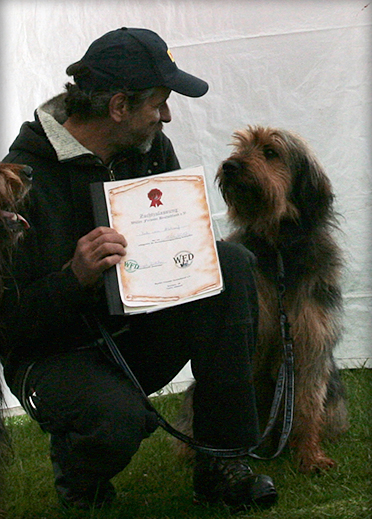Sam ist ein liebevoller Hund im Umgang mit Kindern und Erwachsenen, sofern er sie kennt. Fremden gegenüber verhält er sich zurückhaltend und vorsichtig und möchte nicht unbedingt angefasst werden. Zuerst schnuppern, für gut befinden dann ist es ok. Hündinnen liebt er über alles. Rüden werden zum Teil ignoriert aber meistens muss doch die Rangordnung klargestellt sein, dann akzeptiert er ihre Anwesenheit. Er wird fast täglich in verschiedenen Schick u. Lenkübungen sowie Gehorsamsübungen und Konzentrationsübungen gefordert. Er besitzt einen ausgeprägten Carakter, ist sehr gelehrig und sehr aufmerksam und ist jederzeit für jeden Spass zu haben!